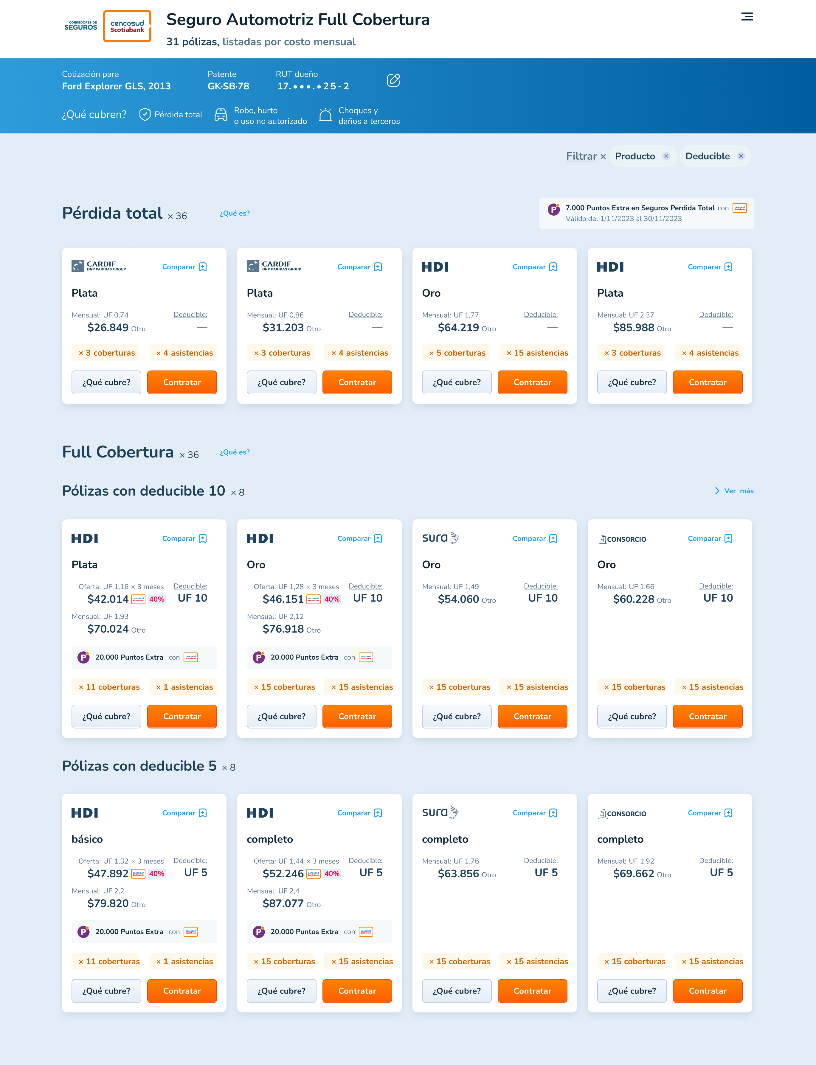 Esa fue mi primera pregunta cuando me sumé al proyecto. El sitio web de venta de seguros para autos de Cencosud Scotiabank tenía un 80% de abandono en la página de resultados. Los usuarios veían 34 opciones casi idénticas en pantallas móviles y se iban. Era obvio que algo estaba mal, pero nadie sabía exactamente qué.